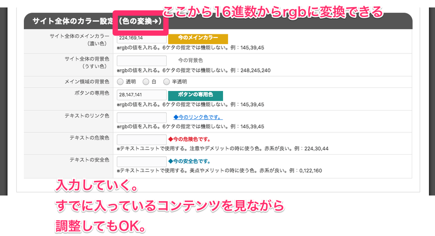 メインカラーを、薄めの黄色にすると文字が見えなくなるといった場合もありましたが、今回追加した機能を使えばメインカラーがやや薄い色でも、それなりに表示できるかなと思います。