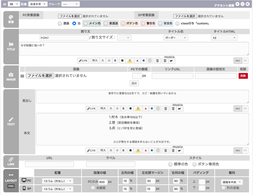 ※同じ物を再現する場合はテキスト揃えのために、直でcss書きが必要 https://wavikura.com/fueture/01kabi-ketsuro.html