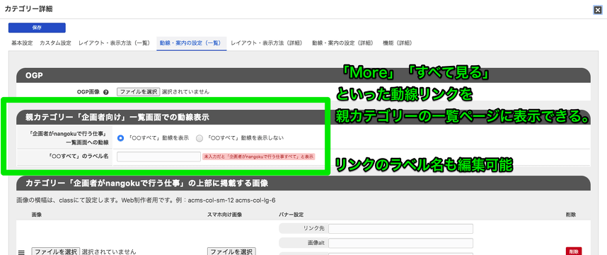 ※子カテゴリーごとに動線リンクの表示 or 非表示を選択できる