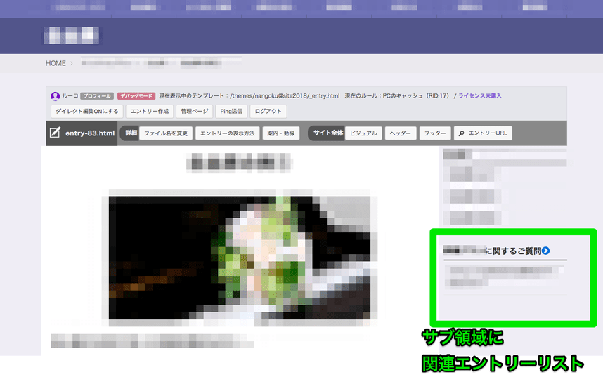 この場合、表示は自動なので、よくある質問を更新すれば、関連エントリーリストも更新されます。