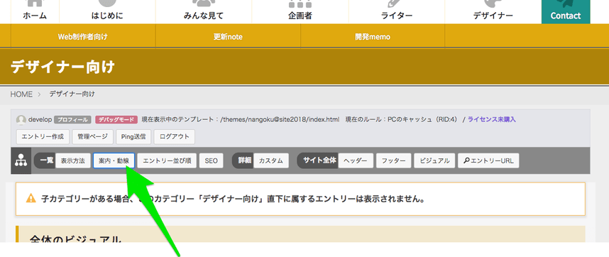 詳細ページの動線管理は、カテゴリー単位で設定します。