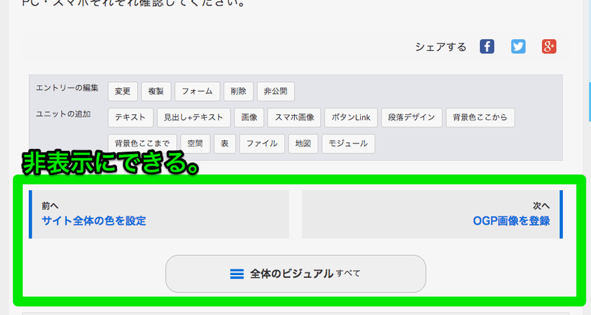 「前へ」「次へ」「一覧すべて」といったページャー動線を、非表示にできます。