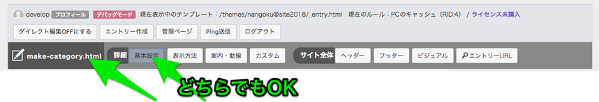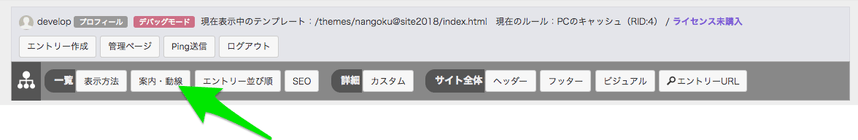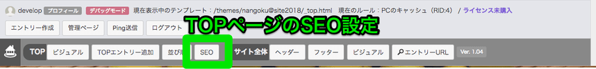 TOPページのSEOボタンからは、SEOの設定に加えて