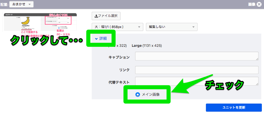 詳細ページのOGP画像は、画像ユニットの「メイン画像」にチェックが入っている画像になります。