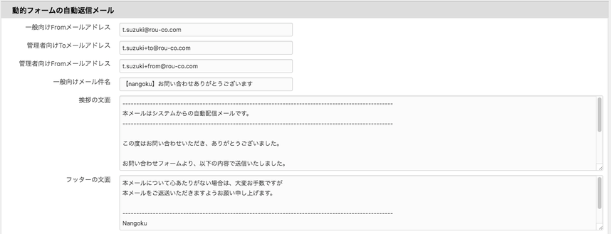 nangokuではメールフォームをWeb制作者なしで作成可能です。