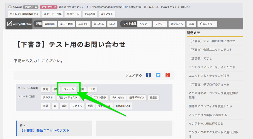 エントリーでは下記のように「フォーム以外」の情報をユニットで入力します。