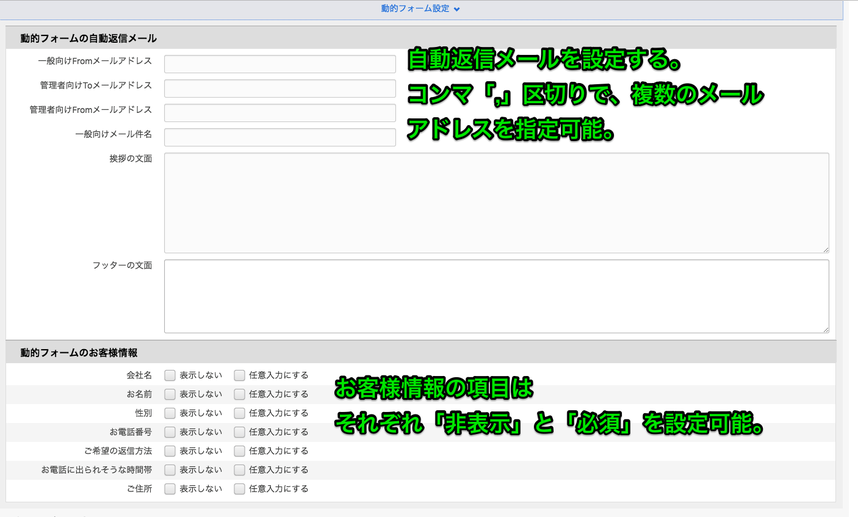 4.フォームの「お客様情報」と、自動返信メールを設定する