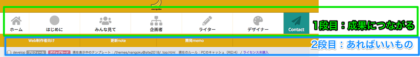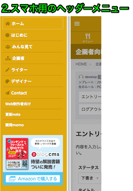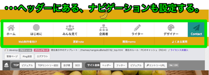 1.ヘッダーナビゲーションは、PC向けです。タブレットでも、状況によっては表示されます。