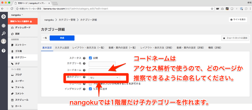 nangokuテンプレートは、子カテゴリーが1階層だけ持てる設計です。