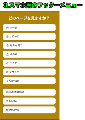 2.はタップする人が少数なので、フッターにも3.が設置されています。