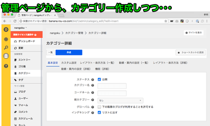 - カテゴリー作成画面を開いておく