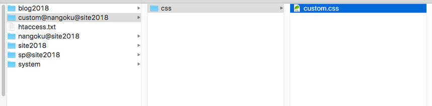 cssを上書き・追加する場合は、テーマ「nangoku@site2018」を継承して、テーマ「hoge@nangoku@site2018」をまず作ってください。