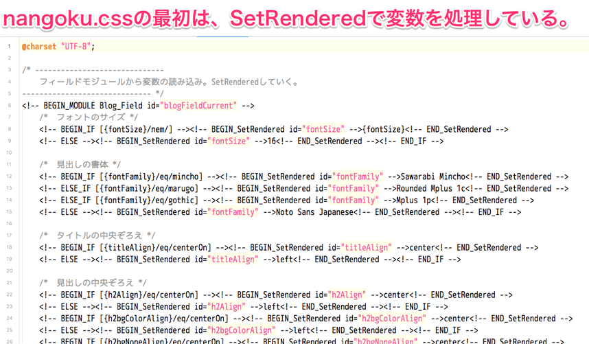 絶対パスで読み込むことで、cssファイル内において変数が使用可能になります。